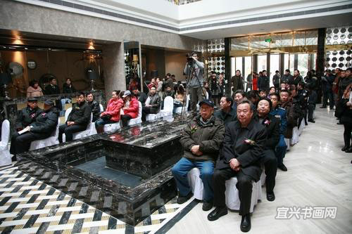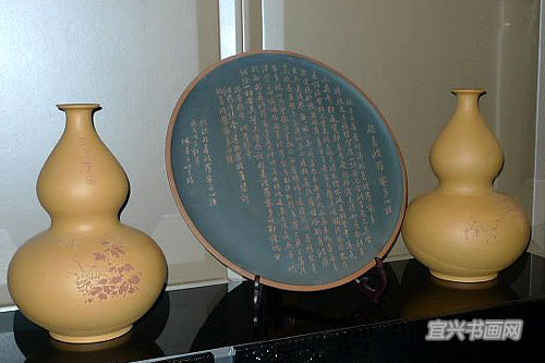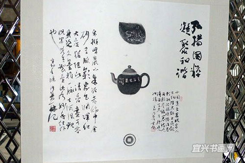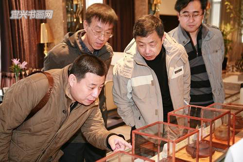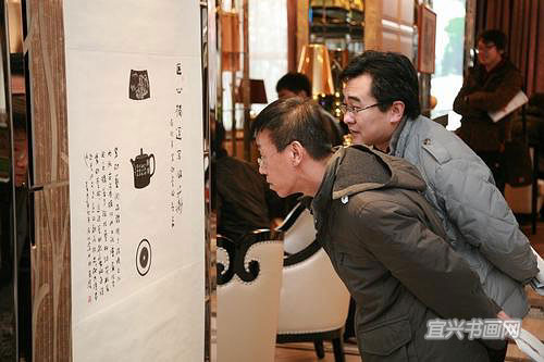 来宾参观紫砂与书画作品 |