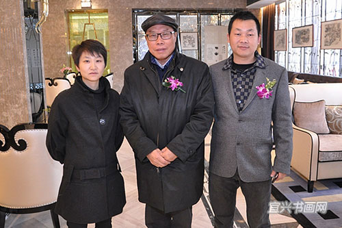 庞现军(图右)王丽萍(图左)夫妇与来宾合影 |