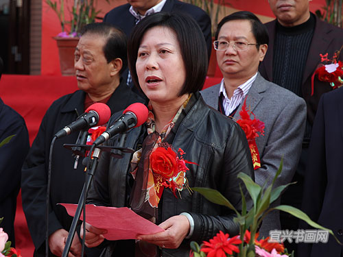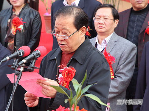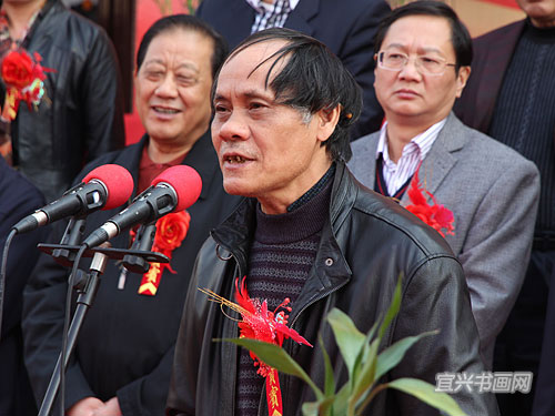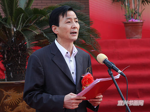 主办单位代表、宜兴市紫砂收藏鉴赏专业委员会会长周汝平主持仪式 |