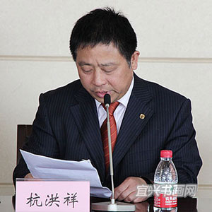 南京电视台新闻部主任、省公务员书协副主席戴乔奇宣读省公务员书协同意设立宜兴分会的批文 |