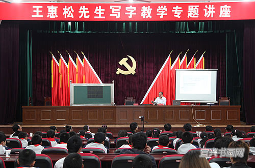 揭牌仪式后,省硬笔书法家协会执行主席王惠松先生为与会嘉宾、会员代表及培训中心学员代表、家长等300多人上了一堂写字教学公益讲座。作为我省硬笔书法的领军人物王惠松先生,30多年来,致力于硬笔书法的推广普及,为全国中小学生亲自编写的教材、字帖近200种。