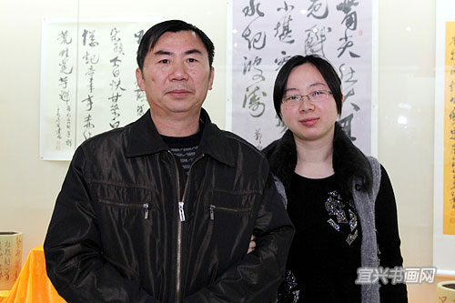 王建林、王静芬父女在展厅 |