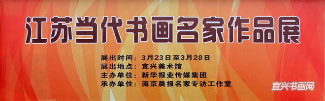 展 讯江苏当代书画名家作品展主办单位:新华报业传媒集团 展出时间:2013年3月23日—28日 展出地点:宜兴美术馆 —————————————————————————————— |