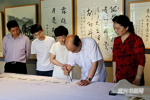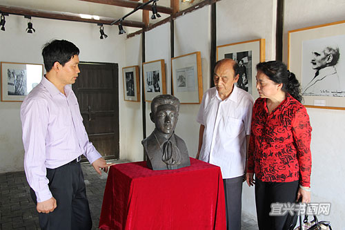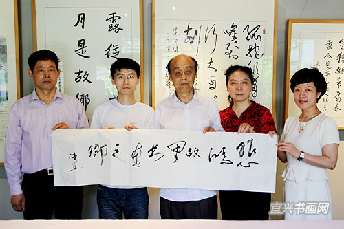 朱沛然书写《悲鸿故里,书画之乡》赠故居,并合影 |