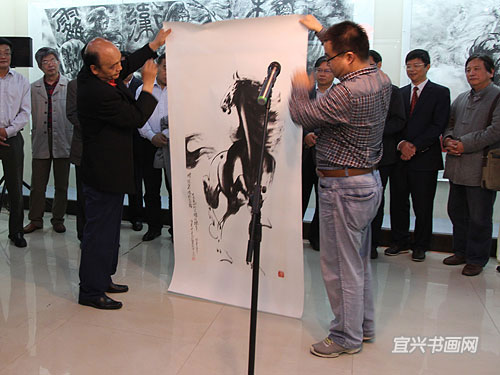 5月8日上午,由市文联、市文广新局、宜兴日报社主办的“朱沛然画展——赴悲鸿大师故里汇报展”隆重开幕,110余件作品在宜兴美术馆、徐悲鸿纪念馆同时展出。来自北京,江苏徐州、扬州、无锡,安徽萧县,浙江宁波,广东深圳等地朱沛然画家的众多好友、美术界同道、地方领导,与我市各界人士共同参加了画展开幕式。 |