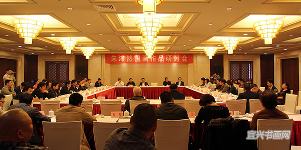 5月8日,宜兴国际饭店陶都厅,来自全国各地的书画界人士近60人,参加“朱沛然国画作品研讨会” |