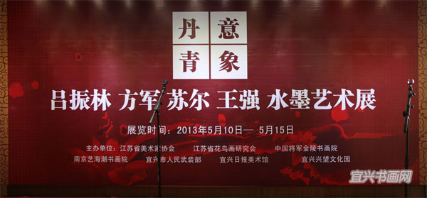 5月10日,由江苏省美术家协会、江苏省花鸟画研究会、中国将军金陵书画院、南京艺海潮书画院、宜兴市人民武装部、宜兴日报美术馆、宜兴兴望文化园联合主办的“丹青意象——吕振林、方军、苏尔、王强水墨艺术展”在宜兴日报美术馆开展。市委常委、市人武部部长朱仁心,市人武部政委蔡卫红,市人大副主任王华良,市政协副主席庄建明等出席开幕式。