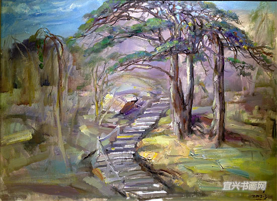 王浩辉《迎客松》 60×80cm 2012年 王浩辉:1956年出生于南京。现任南京艺术学院美术学院教授、硕士生导师;江苏省油画学会副秘书长;中国美协会员。 —————————————————————————————— |