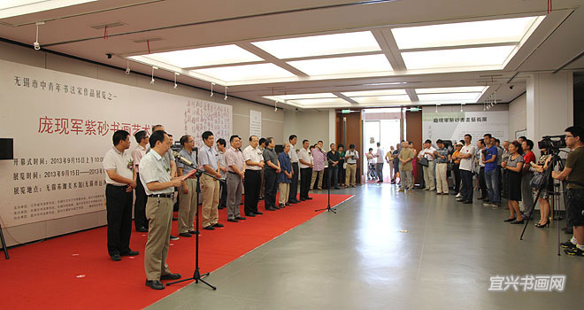 9月15日上午,“庞现军紫砂书画艺术展”在无锡苏珈美术馆隆重开幕。作为无锡市中青年书法家作品展览之一,此展由江苏省书法家协会、无锡市文联、宜兴市委宣传部主办,无锡市书法家协会、无锡市国画院、宜兴市文联、无锡苏珈美术馆承办。 |