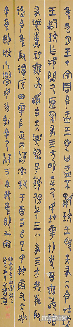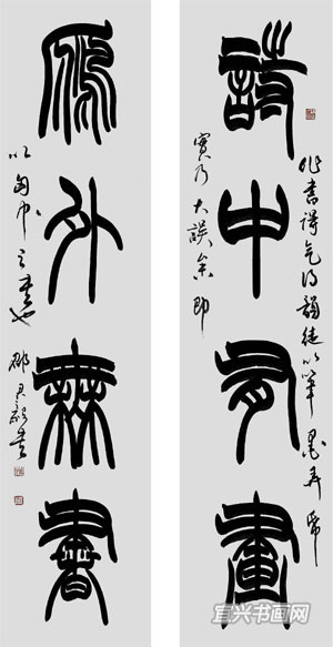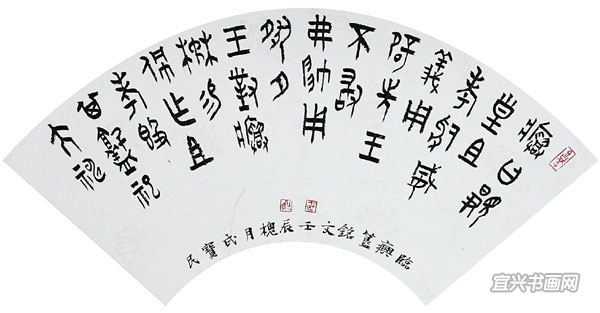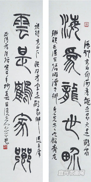 今年7月举行的“古韵太湖·无锡篆隶书八人书法作品展”9月30日起在宜兴日报书画院展出。参展的八位作者:程伟、蒋震宇、武宝民、周建明、顾志杰、巫忠兴、方芳、邵君毅。其中,程伟、周建明为宜兴作者。 |