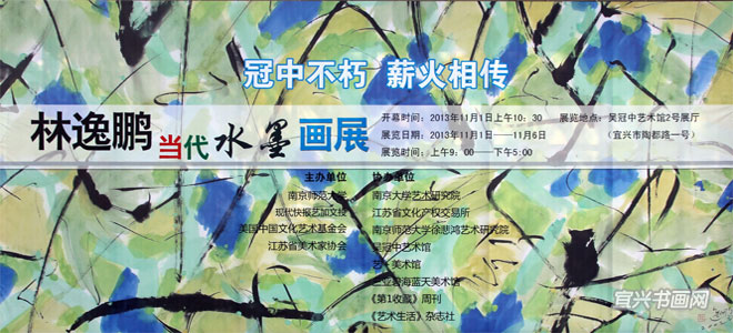 展 讯冠中不朽 薪火相传林逸鹏当代水墨画展主 办 单 位 开幕时间:2013年11月1日上午10:30 —————————————————————————————— |
