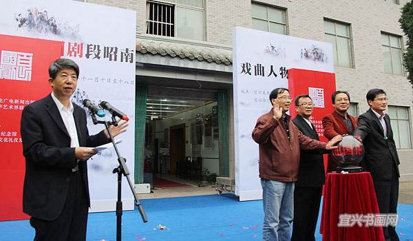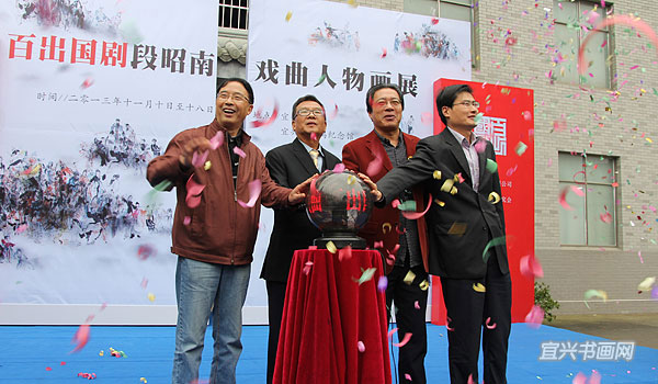 段昭南与原无锡市委宣传部副部长、无锡市文联主席过耀华,宜兴市委宣传部副部长吴旭,宜兴市文广新局副局长杭科军共同启动展览开幕 |