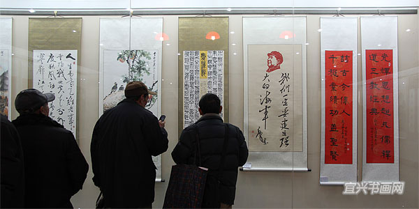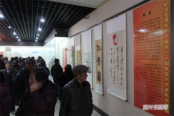 12月20日,我市老年书画爱好者在宜兴美术馆齐聚一堂,举办书画作品展,纪念毛泽东同志诞辰120周年。展览由市民政局、市文广新局主办,市老年书画协会、市美术馆承办。副市长吴青峰参加开幕式并讲话。170多位作者专题创作的180余件作品,挂满了美术馆的三个展厅,作品有书法、国画、油画、刻纸等,形式多样,内容丰富,充分表达了对毛泽东同志及老一辈革命家的缅怀之情,表达了对实现民族复兴国家强盛人民幸福伟大中国梦的热忱和信心,这些作品反映了我市广大老年书画爱好者老有所乐、老有所学、老有所为的精神风貌,也是我市老龄工作成效和老年群众文化成果的展示。 |
