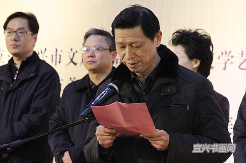 宜兴市美术场馆联合会会长张柯夫介绍展览情况 |