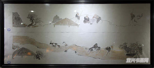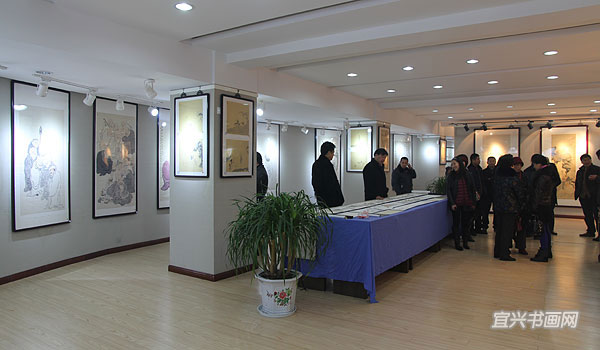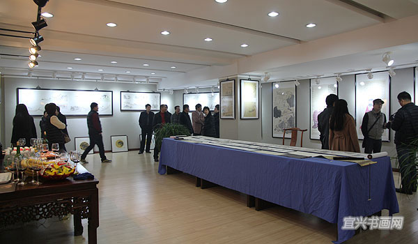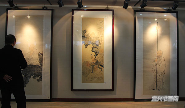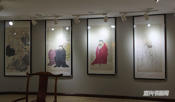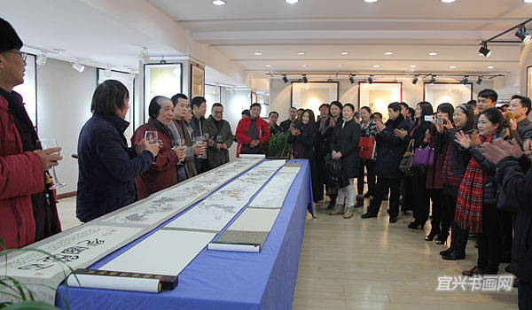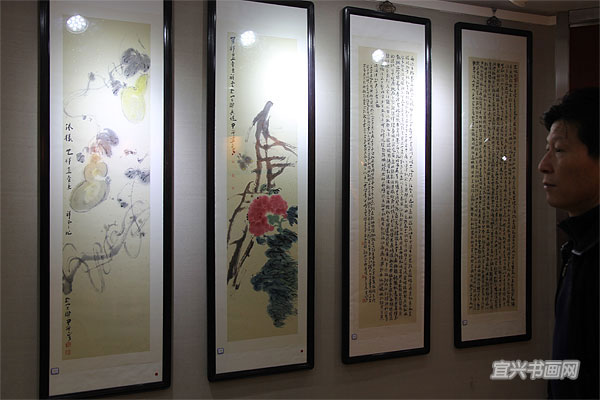 从左至右:画展作者江云祥、著名花鸟画家吴冠南、中国美院教授潘平强、鉴藏艺术馆顾问屠文祥 |