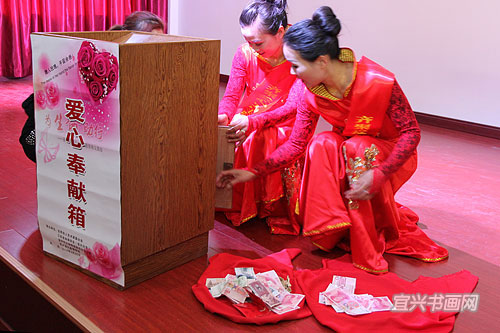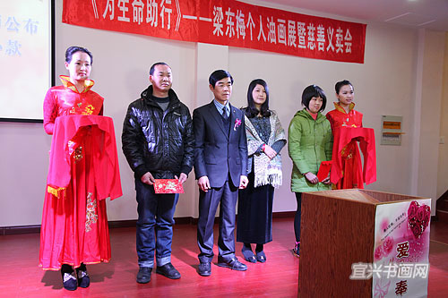 作品义卖款、观众捐款和宜兴蓝天基督教堂捐款现场清点分送两个困难家庭 |
