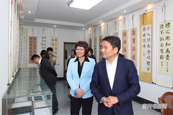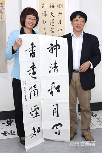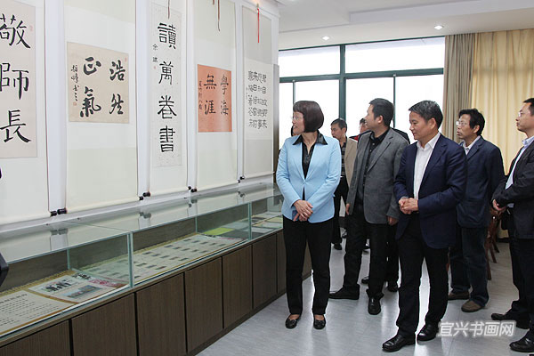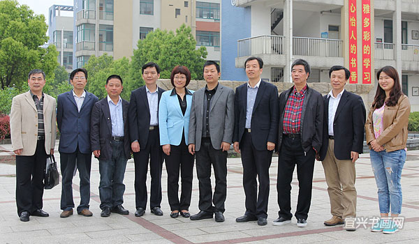 校长蒋菊妹、镇党委宣传委员杨建彪与市书协一行合影 |