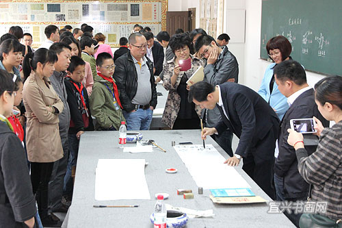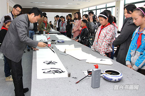4月16日,我市书法家协会主席庞现军等一行8人,来到张渚镇桃溪小学,开展“墨韵飘香、心手相牵”书法家走进校园活动,为该校第14届校园文化艺术节出力,为学校书法教育服务。 |