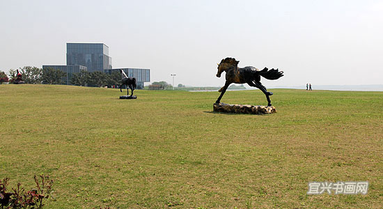 远眺徐悲鸿艺术馆。草坪上奔马雕塑为跨界艺术家马兴文作 |