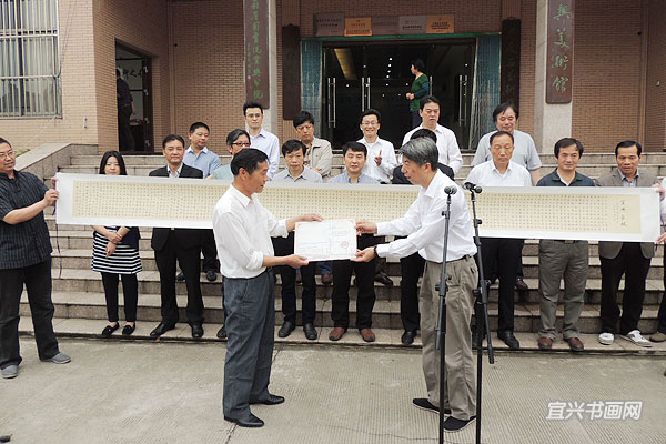 溪隐印社社长郑焕明撰文书写的书法长卷《宜兴赋》赠送市政府,由市美术馆收藏 (尹俊人/摄) |