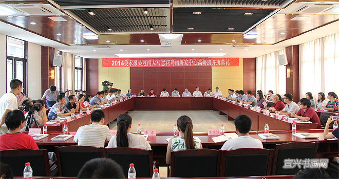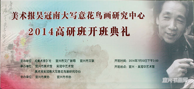 7月10日下午,由美术报社、市文广新局、市文联主办的“2014美术报吴冠南大写意花鸟画研究中心高研班开班典礼”在我市吴冠中艺术馆举行,20名来自全国各地的新学员会聚宜兴,开始为期一年的研修学习。浙江日报副总编陆熙,美术报社董事长朱仁华,我市领导周中平和各文化单位负责人程伟、许夕华、魏敏、刘明、承强、庞现军等出席开班典礼。 |