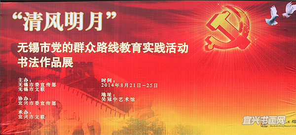由无锡市委宣传部、无锡市文联、宜兴市委宣传部、宜兴市文联联合举办的“清风明月——无锡市党的群众路线教育实践活动书法作品展”8月21日在我市吴冠中艺术馆开展。 |