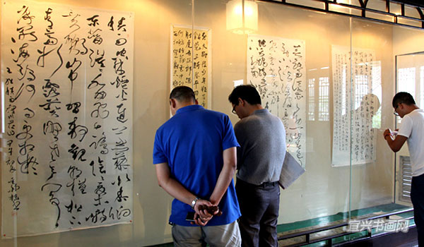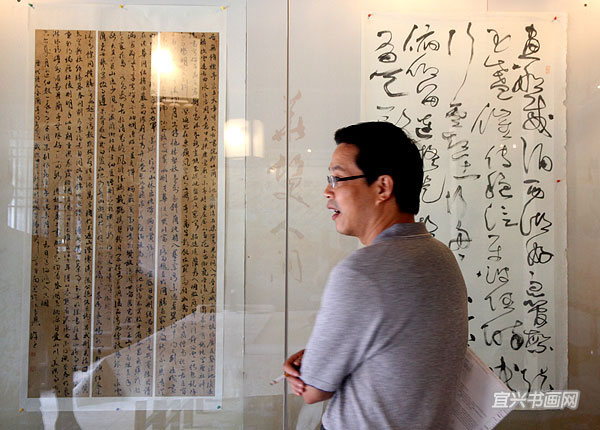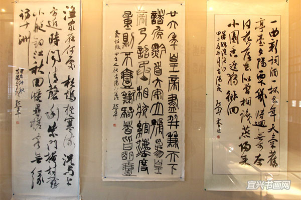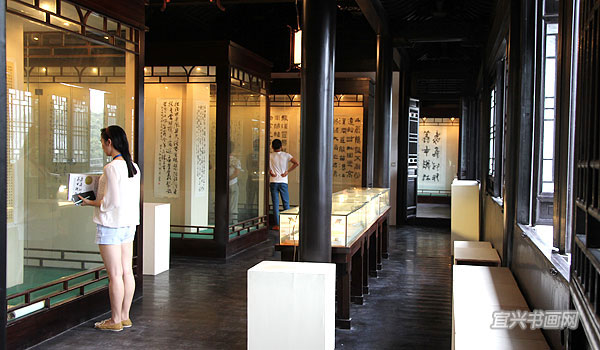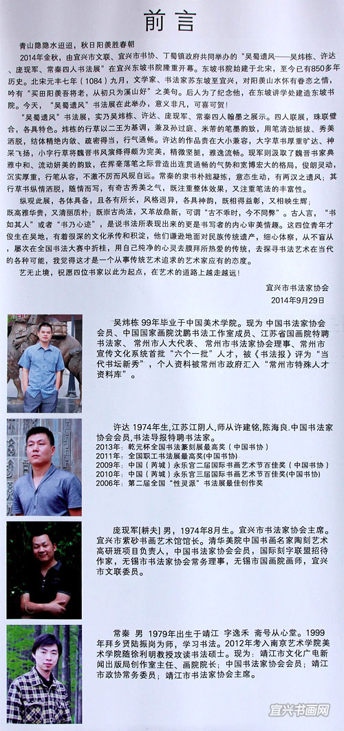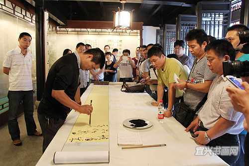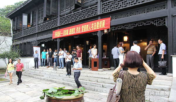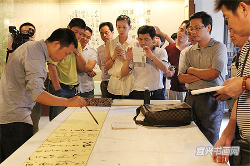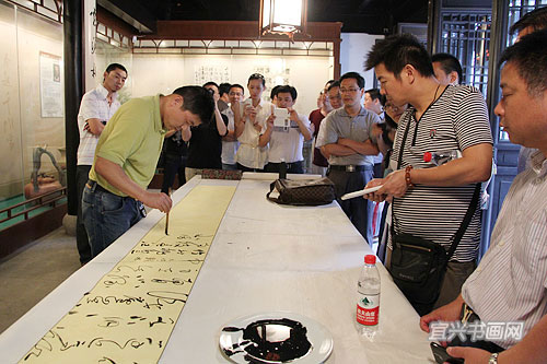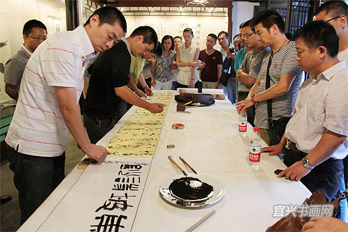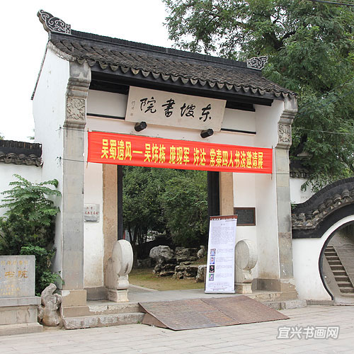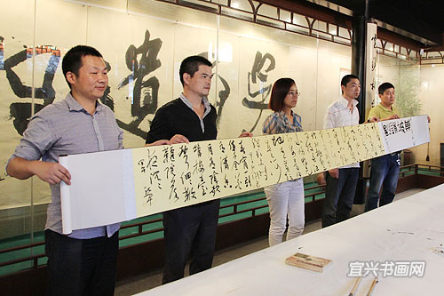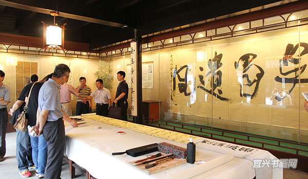 四位参展作者与我市文广新局、文联、丁蜀镇政府的领导、宜兴书法界同道以及来宾会聚于东坡书院 |