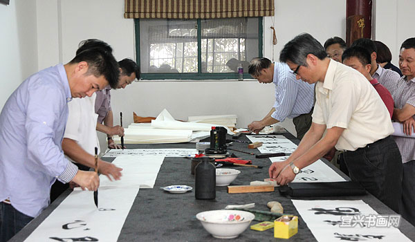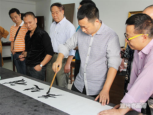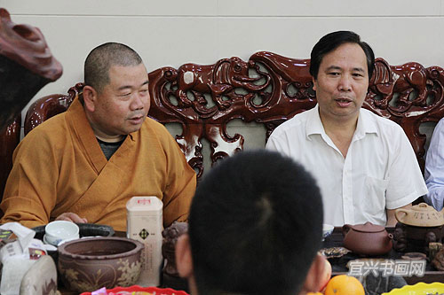 两地协会座谈交流,图右:宜兴市书协主席庞现军 |
