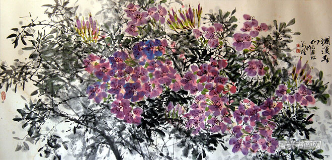 搞中国花鸟画,是一件不容易突破的创作活动。传统花鸟画从东晋南唐起始独立,发展成渐趋简约的写意画风,到明清已形成一个高峰。民国初年,吴、任为代表群的阶海派至今还影响着一代又一代画人。解放后,众多的也包括张万琪在内的数以千百计的探索者,都深知中国花鸟和山水人物画不同。山川的面貌变迁到人物精神状态和服饰的变化都给画家提供了某些突破的新的思路,而花鸟画的对象几乎没有什么变化,因而也给画家带来更多突破的困难。除了齐、潘两位大师还能超越他们的前辈而成为时代的领头雁外,众多的探索者几乎都在无望的突破中奋争。万琪明白此理,因此抓住注情在作品内涵情趣上多作推敲,在一花一鸟中寄托自己独有的思想感情。他在画的意境(情趣)上,画出了一种情调,表露出一种情思,引发了观者的共鸣。那一幅幅“并蒂”、“春晓”、“秋远”等上乘之作,用笔老练,干湿并举,疏密安排都好,其中突出一点是乱中有序,颇为别致——能够有这样的手法,哪怕是一点点,已经是很不容易的了。 —————————————————————————————— |
