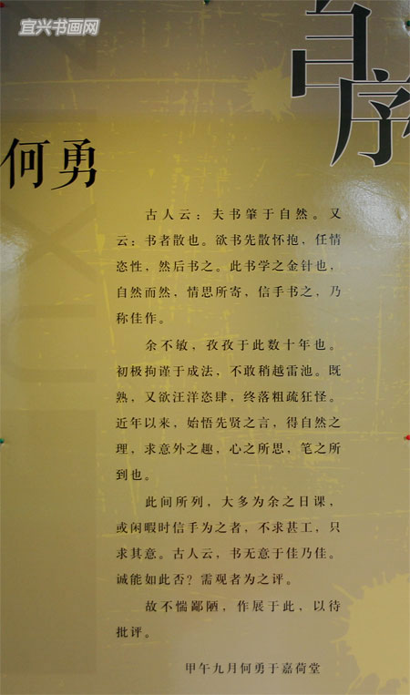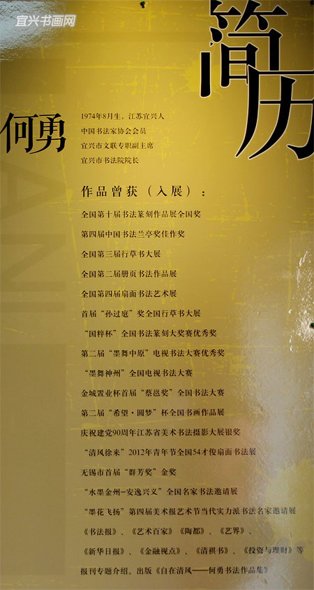11月14日,“本心——何勇书法小品展”在修葺一新的嘉荷堂开幕。何勇,中国书法家协会会员、宜兴市文联专职副主席、宜兴市书法院院长。 |