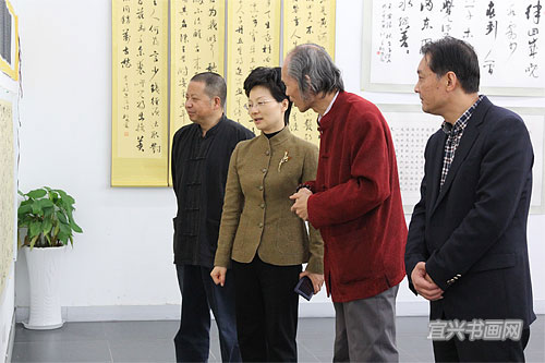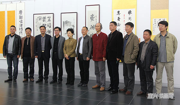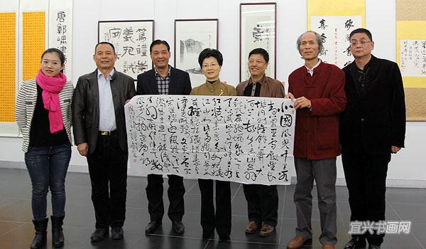 王明忠一行与市委常委、宣传部长沈晓红,市文联、美协、书协、吴冠中艺术馆等领导合影 |