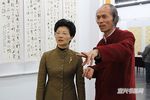 王明忠陪同沈晓红参观展览 |