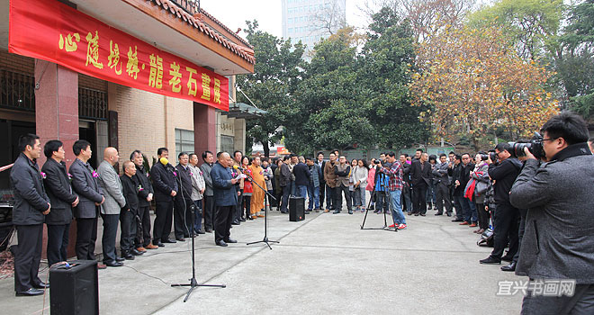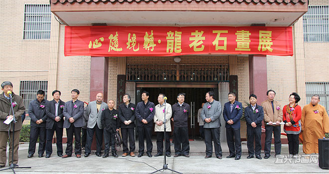 宜兴市文联副主席萧子君、江苏绿森源景观工程有限公司董事长谢云峰、画展作者龙老石、中央文史馆书画院研究员储云在开幕式上先后致辞。 |