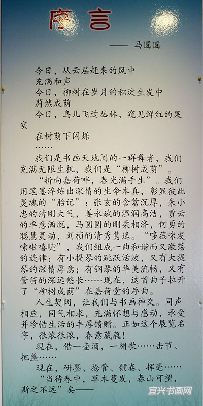 展 讯柳树成荫——迎春书画作品展张 弦 朱小忠 姜永斌 贾 云 马圆圆 何 勇 刘 桢 展览时间:2015年2月14日—3月8日