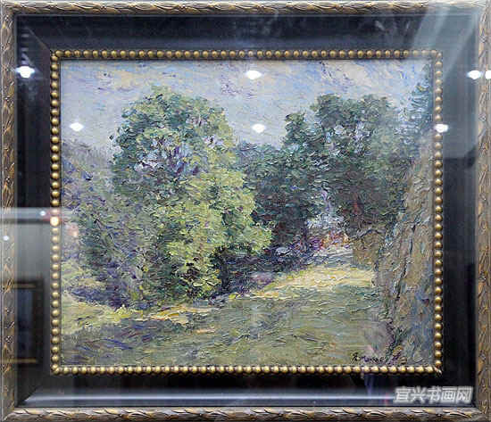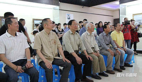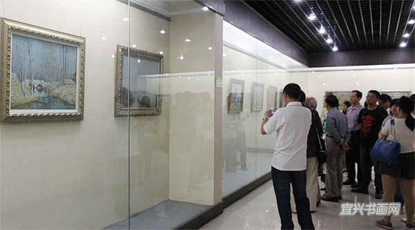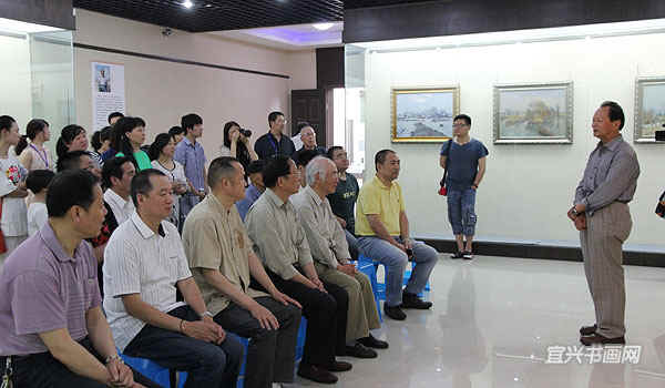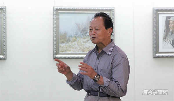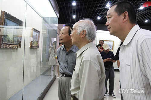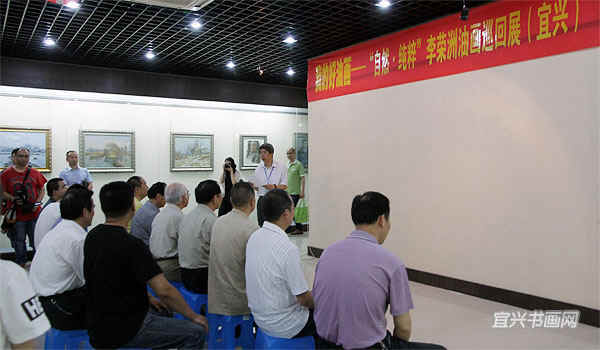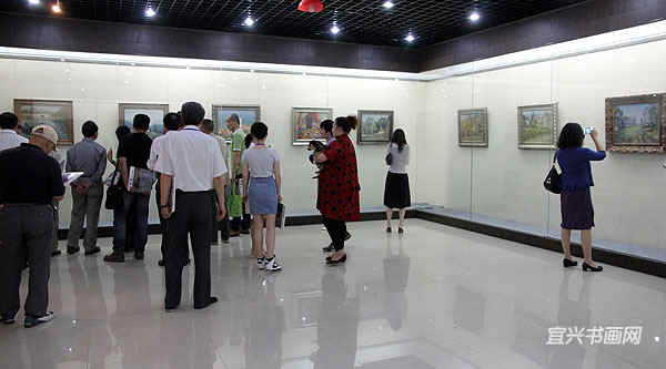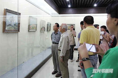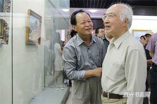 著名宜兴籍油画家、南京师范大学教授徐明华与南京艺术学院教授李荣洲是多年好友。徐明华前来参加开幕式,并与李荣洲一起参观展览。 |