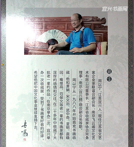 周以宁书画精品收藏展,自今年春节在宜兴日报书画院展出后,6月18日至27日再次应邀在市美术馆展出。 |