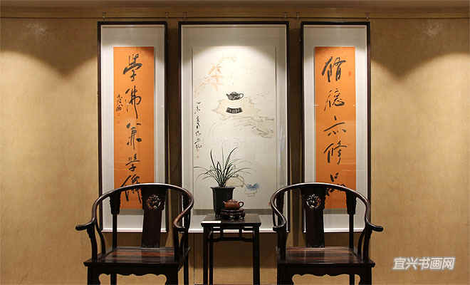 从书画与紫砂壶说起 文/吴冠南 中国人喜欢并讲究喝茶是从骨髓里出发的。喝茶么,就必然需要有与茶相匹配的容器。特别讲究的甚至还要有与茶叶、容器相匹配的好水。据考证,最早在宋代,宜兴就有了紫砂壶的出现。但宋人喝茶的容器都是用像小碗一样的盏,叫茶盏。北京人喝茶干脆用碗,叫大碗茶。尤其是宜兴均釉陶经过窑变得梦幻离奇的“兔毫盏”等,是宋人乃至今天,仍然受到人们热捧的品茗宝器。所以历来就有“家有万贯,不及均瓷一片”的说法。由此可见自宋代起茶客们对均瓷的珍视程度。以此推论可以看出,实际上紫砂壶在宋代虽有出现,但尚未盛行。 |
