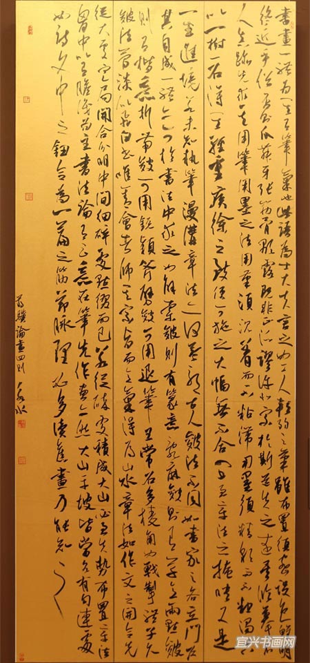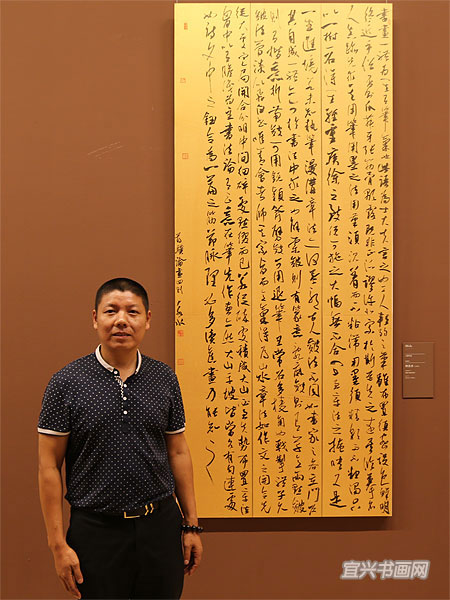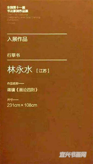 全国第十一届书法篆刻作品展8月9日在北京开幕,我市书法家林永水的行草书作品入展。作品名称:蒋骥《画论四则》,尺寸:231cm×108cm。