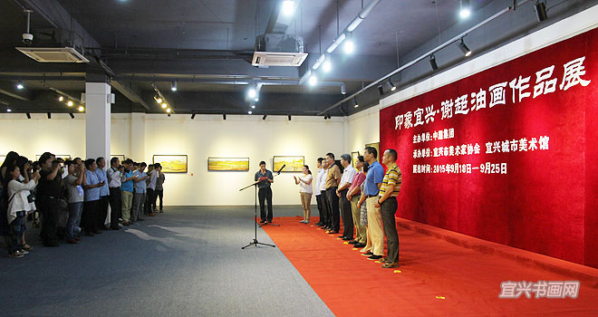 由江苏中超集团主办,宜兴市美协、宜兴城市美术馆承办的“印象宜兴·谢超油画作品展”,9月18日在城市美术馆开幕。中超集团董事长杨飞、市文联主席魏敏、市文联副主席刘明、市美协主席承强、市油画学会会长刘建平、市残联副理事长吴亚群、中国文物保护基金会社会文物保护专项基金管理委员会江苏工作站站长王盘元、江苏东泽公司总经理陈政科出席活动。宜兴城市美术馆馆长张柯夫主持开幕式。 |