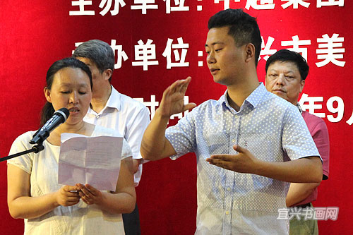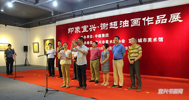 宜兴城市美术馆馆长张柯夫主持仪式,中超集团董事长杨飞、市美协主席承强、市文联副主席刘明先后讲话 |