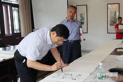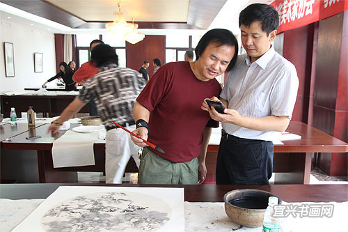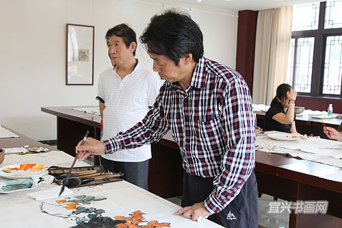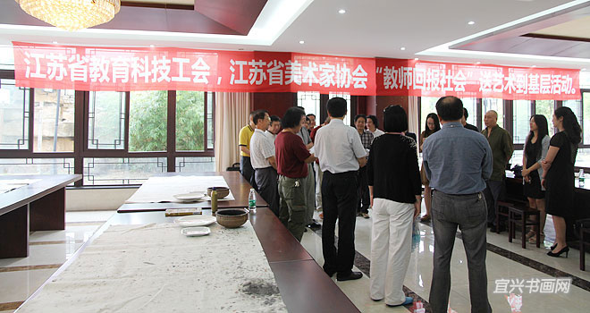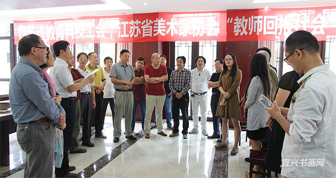 9月25日上午,一批来自南京高校的书画家来我市吴冠中艺术馆进行艺术交流。此次交流是由省教育科技工会、省美术家协会主办,我市总工会、文联协办的“教师回报社会”活动。我省高等院校的艺术家们落实中央关于“深入生活、扎根人民”的要求,送艺术到基层,深入社会采风创作。南京书画家参观了我市国画院、书法院、油画院工作室,了解了我市书画创作状况,并与我市书画家共同举行书画笔会。 |