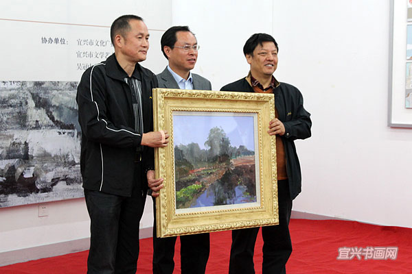 吴冠中艺术馆馆长承强与优秀作者代表向市人民政府赠送作品 |