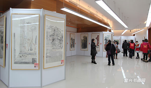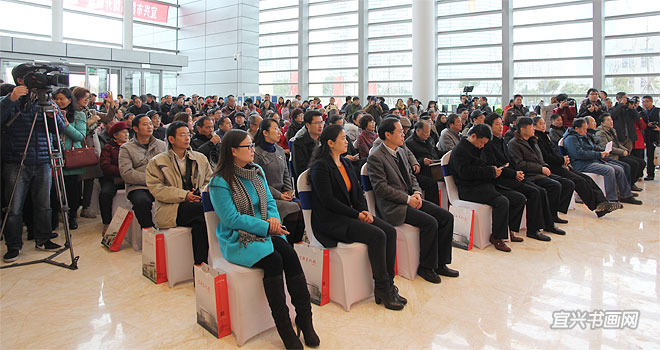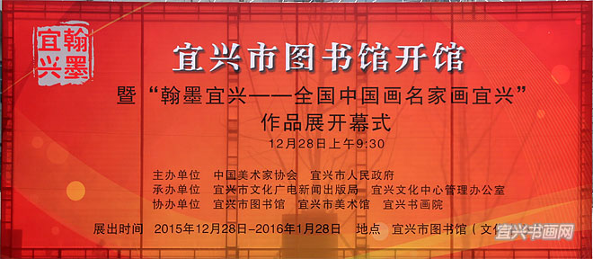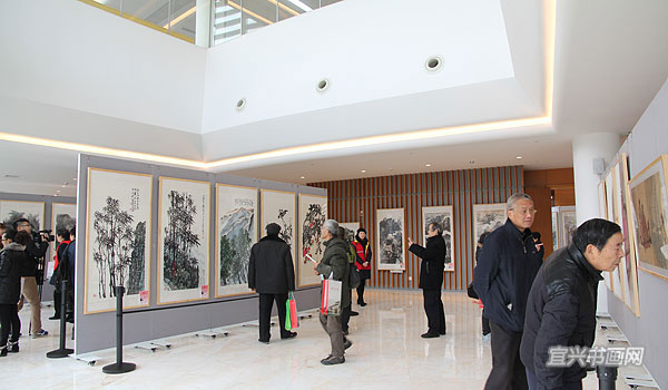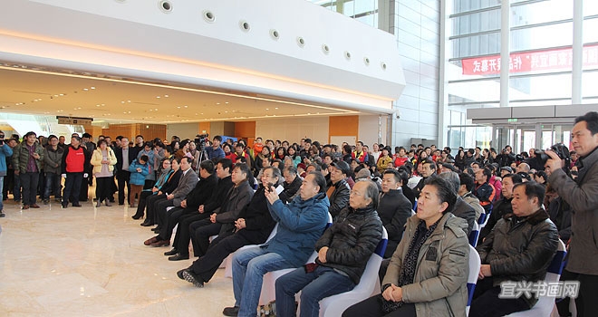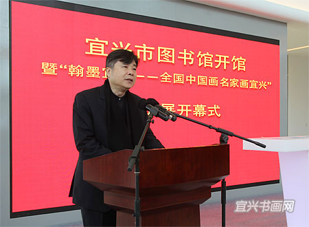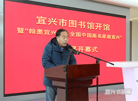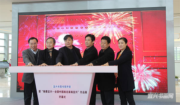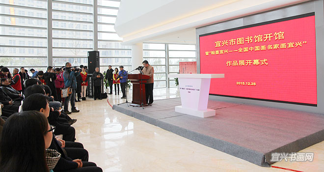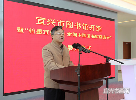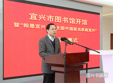 12月28日上午,宜兴市图书馆开馆暨“翰墨宜兴——全国中国画名家画宜兴”作品展开幕隆重举行。中国美术家协会副秘书长杜军,江苏省美术家协会顾问、原副主席兼秘书长尹石,市领导周中平、赵菊明、尹志华、温秀芳出席活动。 |