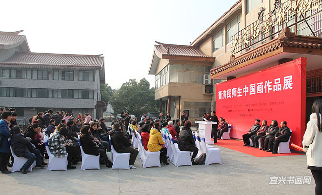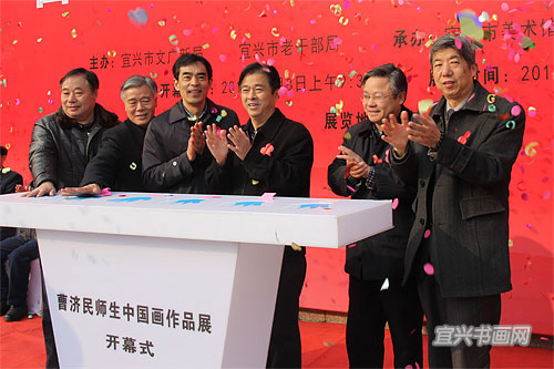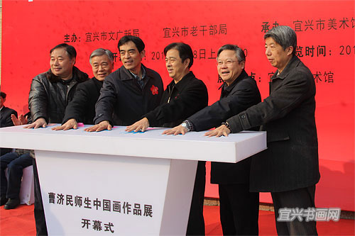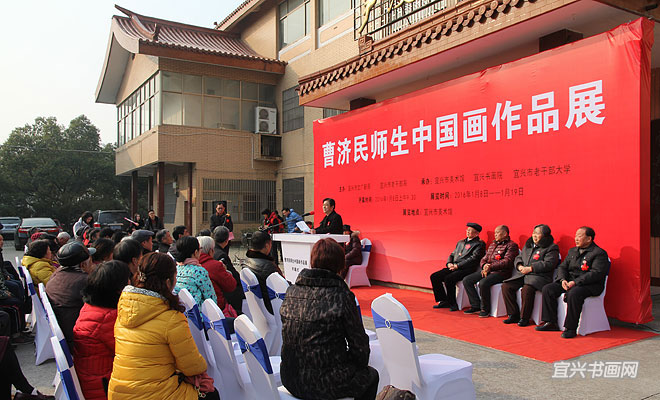 1月8日上午,曹济民师生中国画作品展在市美术馆开幕。展览由市文广新局、市老干部局主办,市美术馆、宜兴书画院、市老干部大学承办。8位学员代表在主席台就座。学员代表钱绍昌,市委组织部副部长、老干部局局长王旻明,曹济民老师,市政协主席邵亚群先后讲话。市老干部局副局长、老干部大学常务副校长姚开宏主持仪式。 |