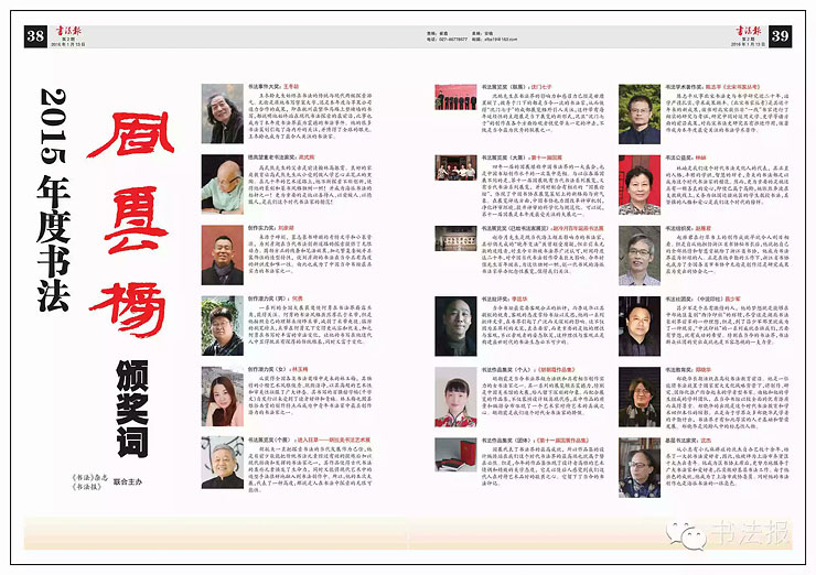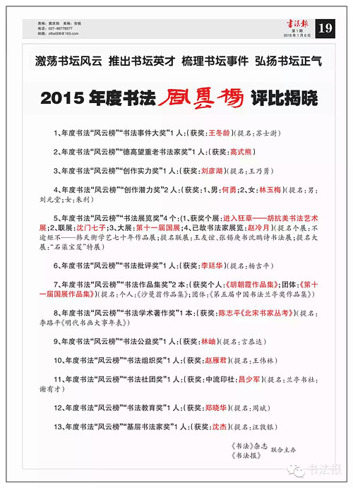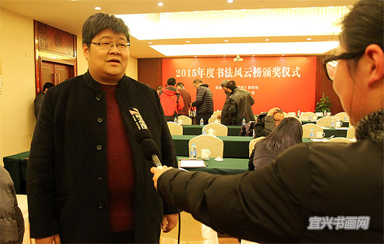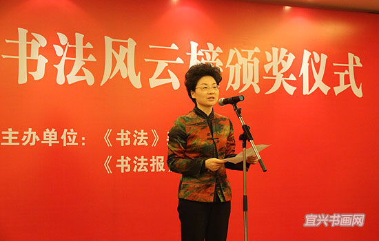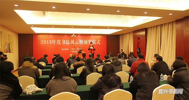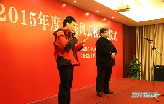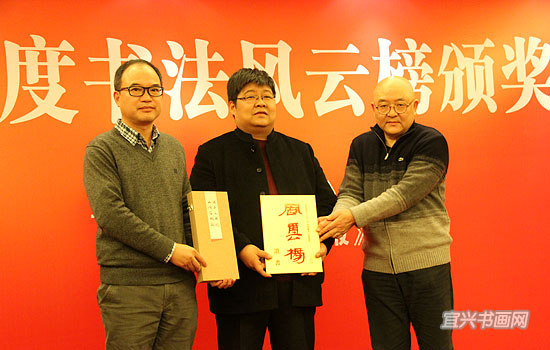 《书法》杂志、《书法报》于2016年初联合发布“2015年度书法风云榜”评比结果,我市书法家何勇荣获年度“创作潜力奖” 。1月22日,主办方专程来宜兴举行颁奖仪式,《书法》杂志执行主编胡传海、《书法报》主编毛羽为何勇颁奖,市委常委、宣传部长沈晓红出席仪式并致辞。 |