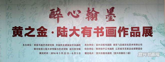 5月22日,由美国书画艺术研究院、中国民主建国会中央画院、南京信息工程大学传媒与艺术学院、宜兴市文联等单位举办,“醉心翰墨——黄之金、陆大有书画作品展”在宜兴日报书画院开幕。 |