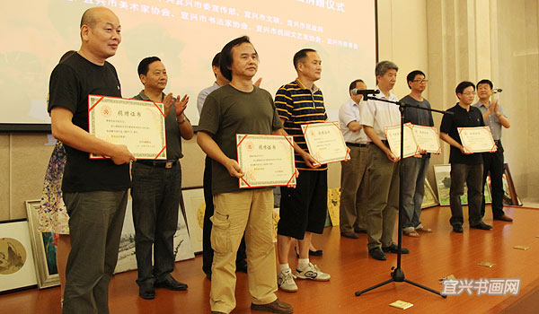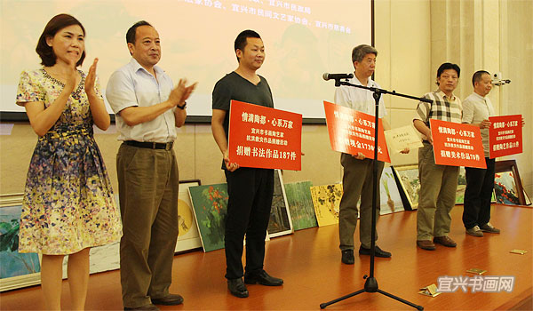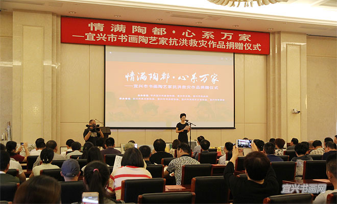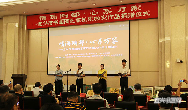 宜兴书画陶艺家抗洪救灾捐赠作品幻灯演示 |