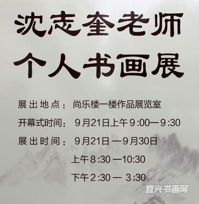 展 讯沈 志 奎 书 画 展展出时间:2016年9月21日—30日 展出地点:宜兴市老干部大学 —————————————————————————————— |