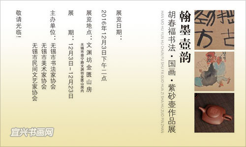 12月3日下午,翰墨壶韵——胡春福书法、国画、紫砂壶作品展,在无锡市文渊坊金匮山房开幕。 |