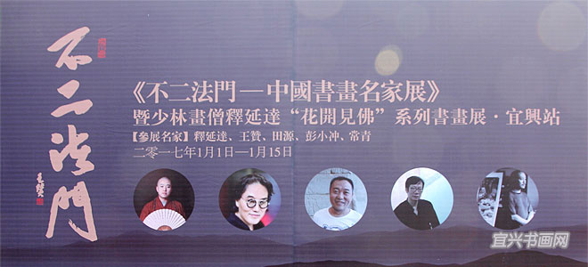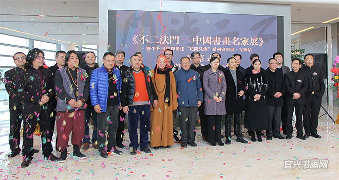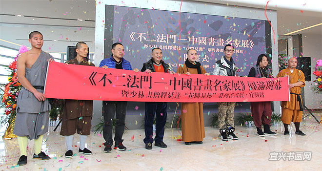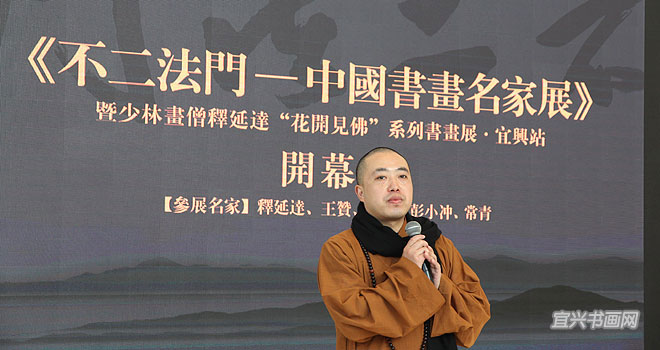 1月1日,“不二法门”中国书画名家展暨少林画僧释延达“花开见佛”系列书画展(宜兴站)在宜兴市图书馆开幕。展览由中国美术学院、河南省商丘佛教协会、河南省罗汉自在堂、江苏省善耕文化传播有限公司联合主办。少林寺监院、少林武僧团团长释延达法师邀请中国美术学院王赞副院长、田源教授、彭小冲副教授、常青副教授共同参展,以“禅与美学——不二法门”为主题,使禅意融入书画,让艺术走进生活。 |